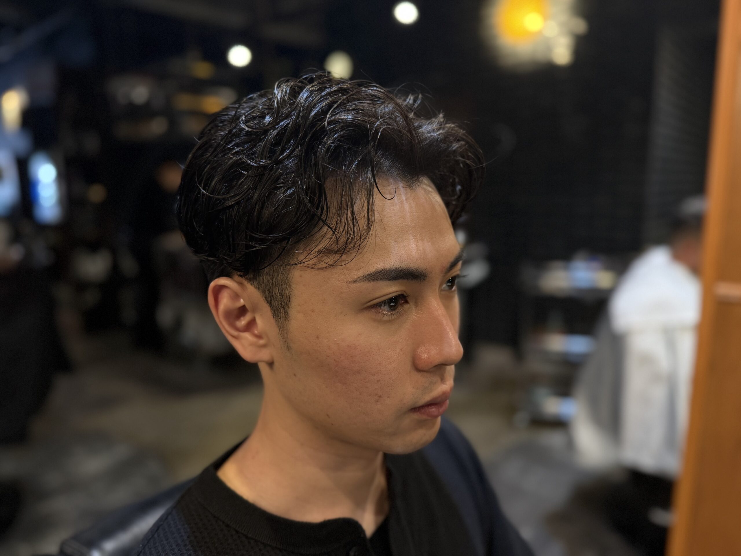 フェードもあえて3mmで施し、もみあげとネックラインを強調させる事でいま風になります!